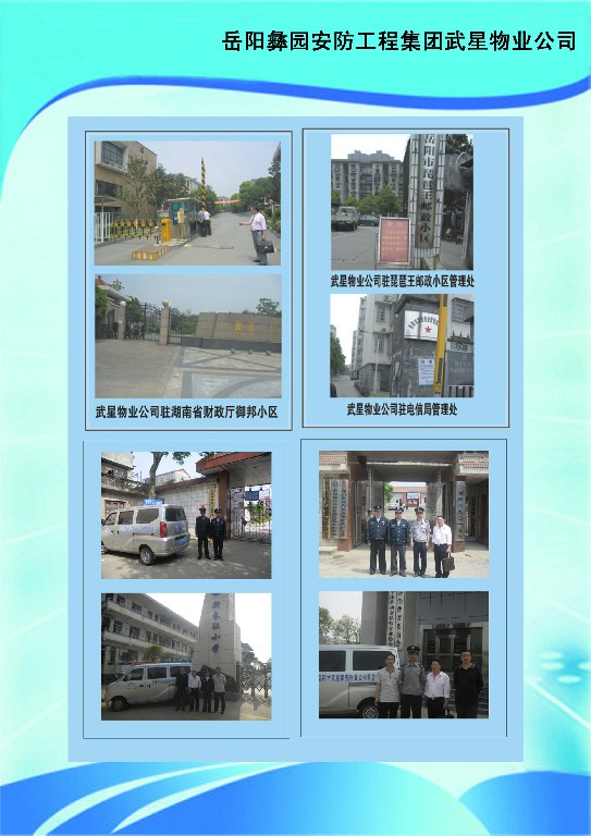 岳陽武星物業(yè)管理有限公司繼岳陽市武星保安公司于2012年2月成立,武星保安公司是經(jīng)省公安廳批準成立的民營保安公司,為滿足廣大客戶的迫切要求,公司能為客戶提供保安、物業(yè)整體服務(wù)。武星物業(yè)公司技術(shù)力量雄厚,有電梯維修工程師、園林綠化師、水電安裝工程師、消防等專業(yè)技術(shù)人才。為了更好地服務(wù)社會、培育特種人才,公司與岳陽市巴陵職業(yè)技術(shù)學(xué)校聯(lián)合辦學(xué),開設(shè)了保鏢保安武術(shù)散打班、物業(yè)管理班、園林綠化技術(shù)班、水電維修班、禮儀班,現(xiàn)有專業(yè)學(xué)員幾百名。公司為各黨政機關(guān)、社會團體、廠礦企事業(yè)單位、金融機構(gòu)、房地產(chǎn)開發(fā)商居民住宅、賓館、學(xué)校、娛樂場所等提供人力資源和技術(shù)防范服務(wù)。目前公司有幾十家大客戶,公司優(yōu)質(zhì)的服務(wù)得到了客戶的好評?,F(xiàn)經(jīng)公安廳市公安局批準成立了保衛(wèi)科、督查應(yīng)急大隊,為客戶不定時的服務(wù)和回訪,公司有一批業(yè)務(wù)精、能力強的管理人才,為客戶提供高質(zhì)量的服務(wù)。武星保安物業(yè),保您家安樂業(yè)。